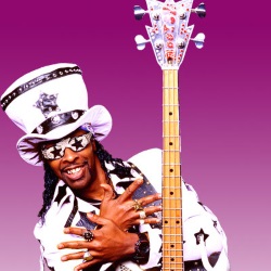 In Funk, the song’s lyrics took a secondary role. The groove was king. To drive this home, bass players developed a new percussive style, as demonstrated here by Larry Graham of Sly & The Family Stone. In time, chord changes would also became a thing of the past. Some funk tunes sat on the same minor chord for nearly half an hour! One particular musician, George Clinton, rose to prominence in this respect, with his bands Parliament and Funkadelic. His ‘P-Funk’ stage shows soon became world-famous.
